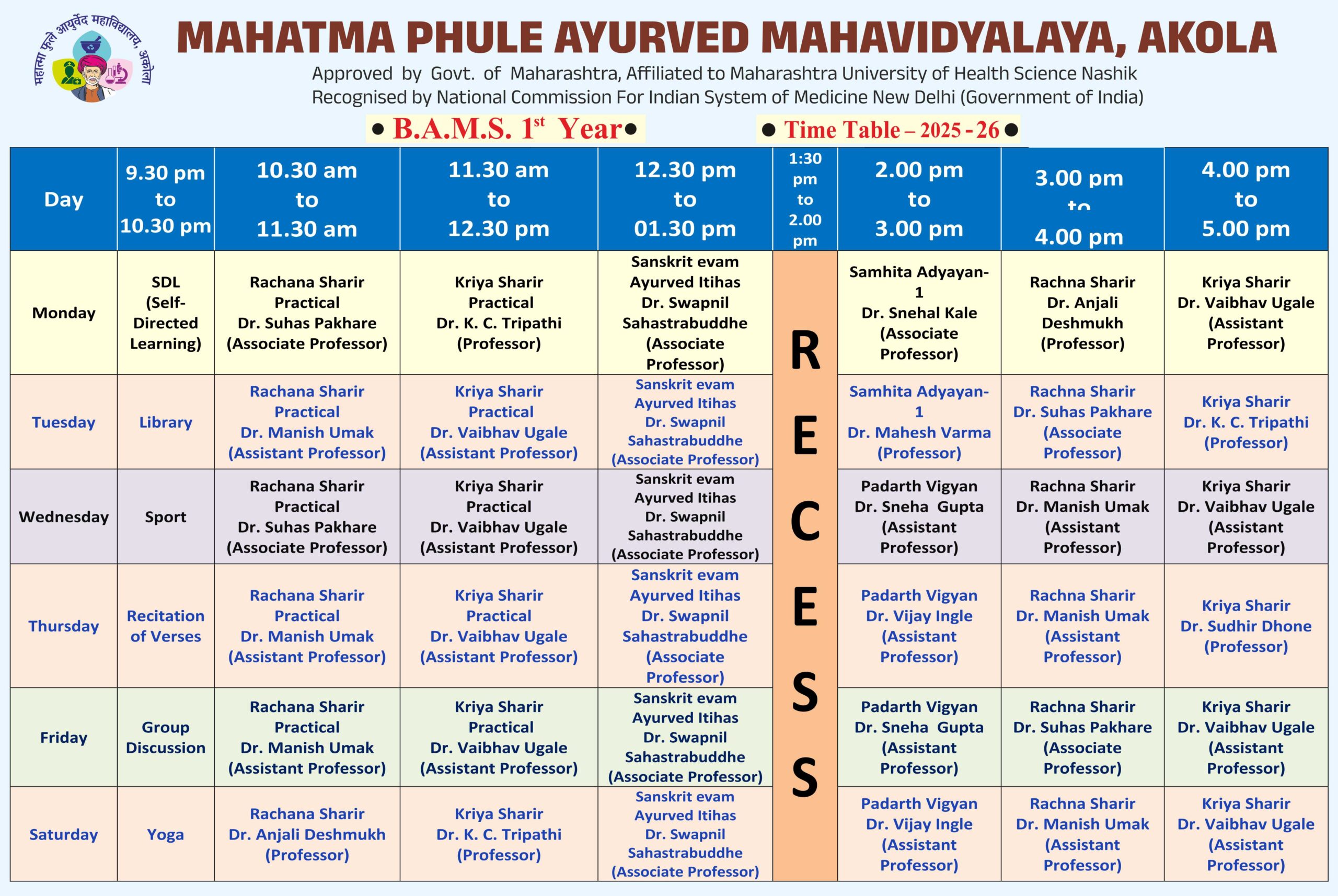 Mahatma Phule Ayurved Mahavidyalaya Akola is a private institution offering a BAMS (Bachelor of Ayurvedic Medicine and Surgery) course. The college is recognized by the Ministry of AYUSH, Government of India, and the Central Council of Indian Medicine (CCIM). Its primary goal is to provide quality education in Ayurvedic medicine and promote holistic health.